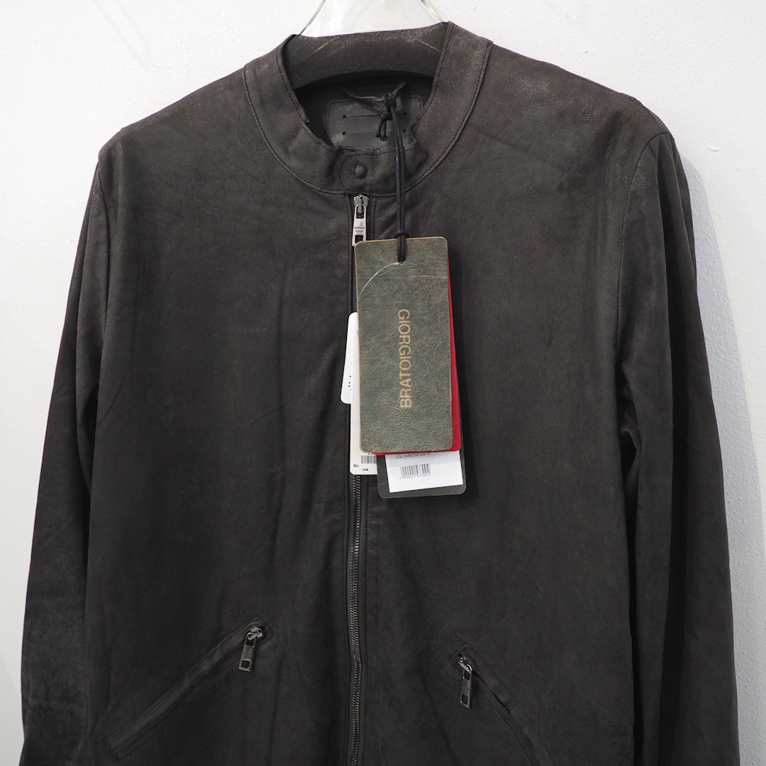 > 新品 定価20万 ジョルジオブラット ラム レザー シングル ライダース ジャケット 黒 ブラック 48 メンズ M GIORGIO BRATO 春夏 イタリア製