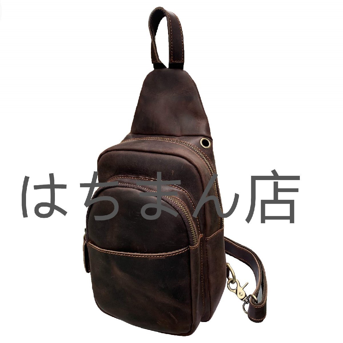 - ボディバッグ メンズ 本革 牛革 薄型 軽量 レザー 人気 カジュアル ショルダーバッグ 斜め掛け 自転車 旅行 通学 通勤 ブラウン
