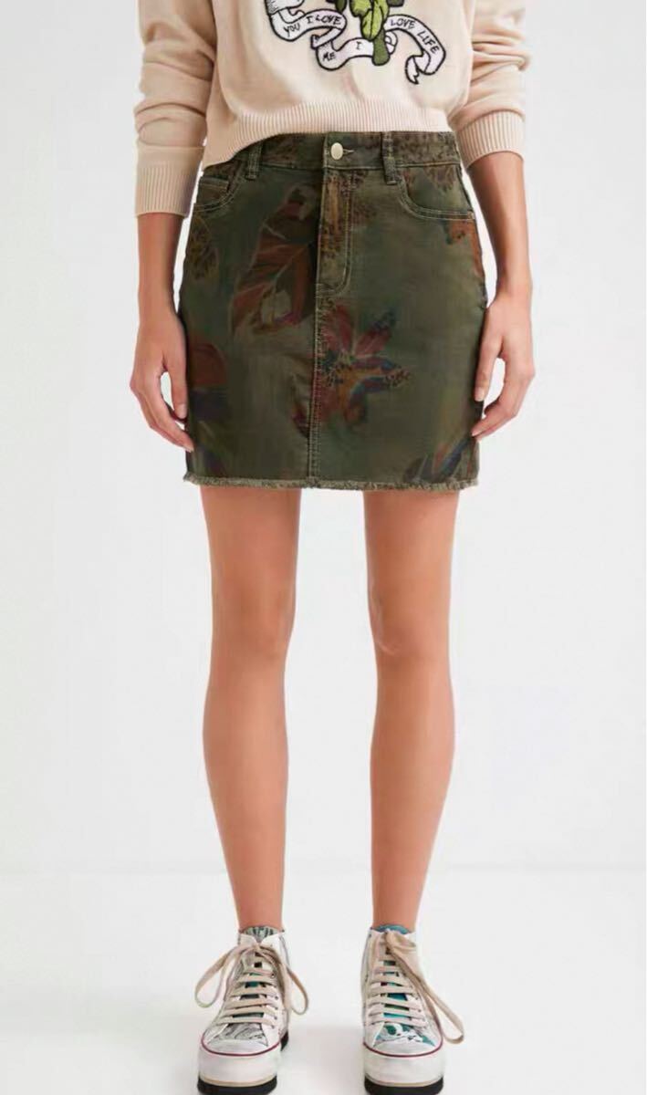 - 新品 未使用 定価:14899円(デシグアル)デシグアル Desigual フローラルカモフラージュ ミニスカート (グリーン)size:42