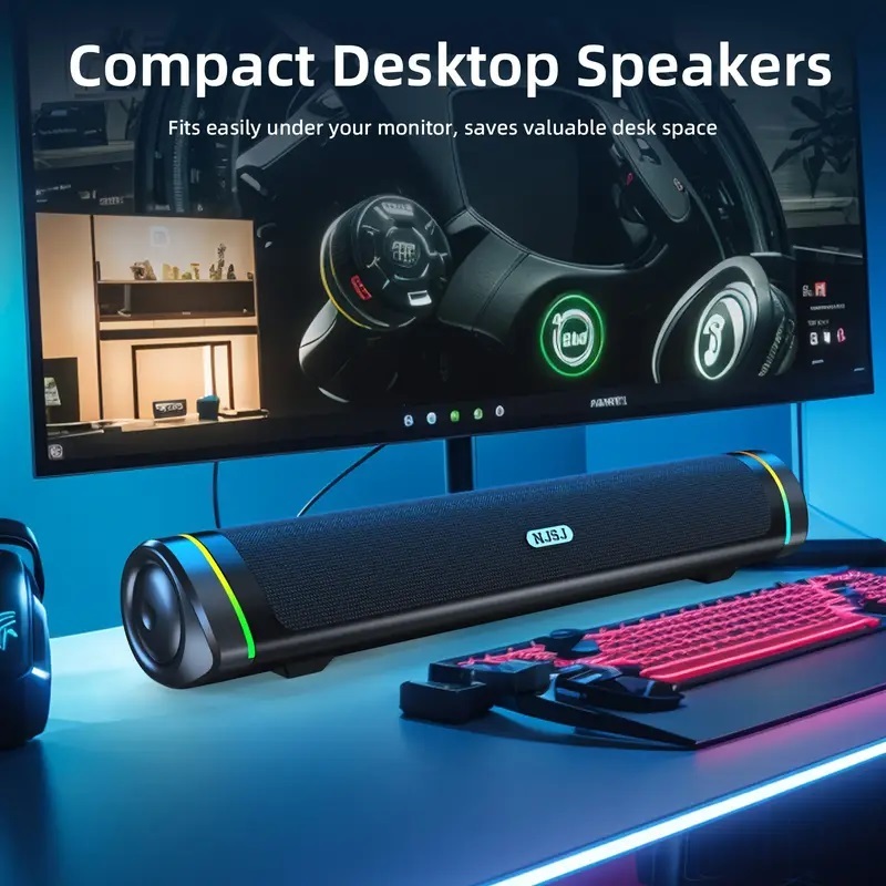 - コンピュータスピーカーPCステレオスピーカー3DサラウンドHifiサウンドウィットLEDアトモスフィアライトゲームサウンドバースマホノート等