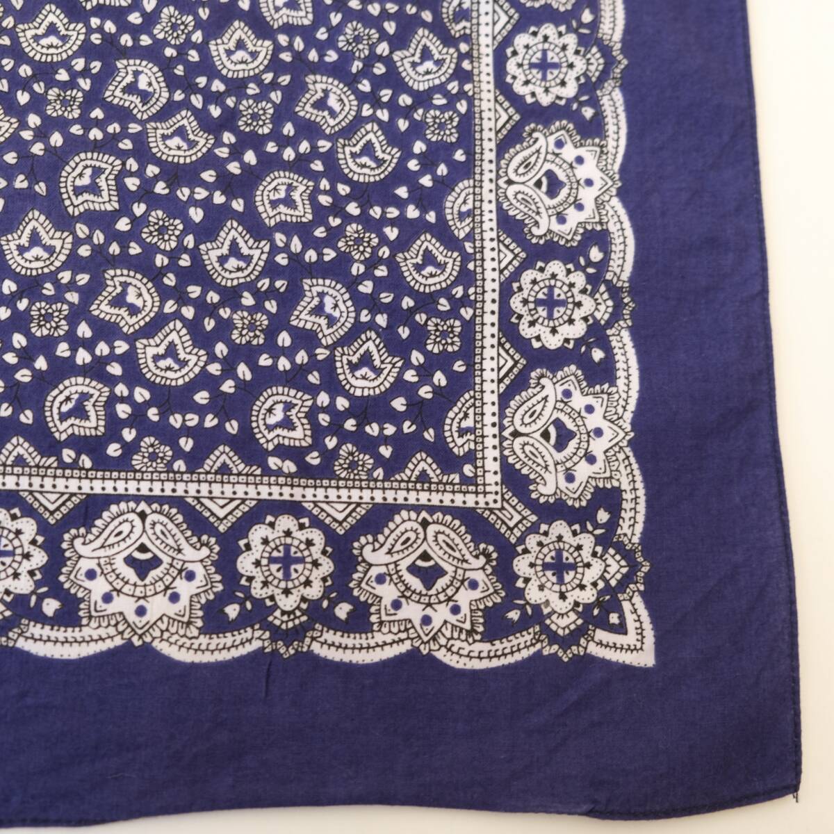 - デッドストック【 ヨーロッパ ビンテージ 】コットン 植物柄 バンダナ / ブルーホワイトブラック 青白黒系 / フランス ワーク