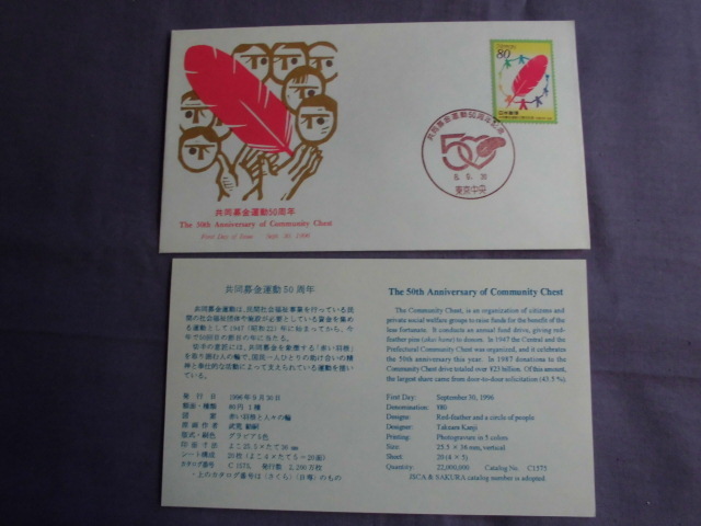 - 初日カバー 共同募金運動50周年 解説書あり 8.9.30