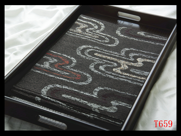 - 蔵【T659】厳選逸品 ヱ霞紋 藍墨茶色地 気品豊かに 正絹高級美術名古屋帯 ◇検◇簪着物袋帯和装小物帯締め