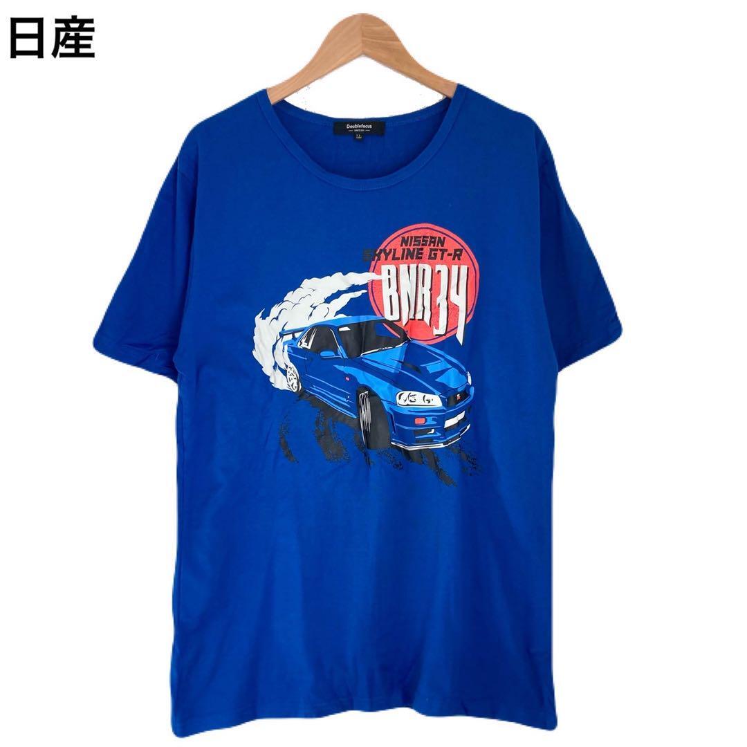 - 日産 Tシャツ スカイライン GT-R 車 プリント 半袖 メンズ ブルー XL