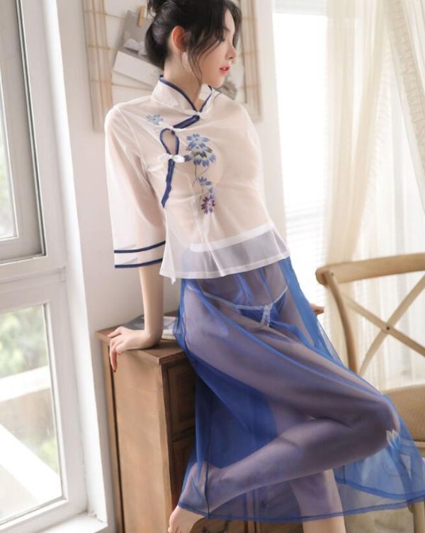 - 人気推薦 / セクシー可愛い チャイナ風 ワンピース ランジェリー コスチューム ベビードール コスプレ衣装 チャイナドレス / ブルー