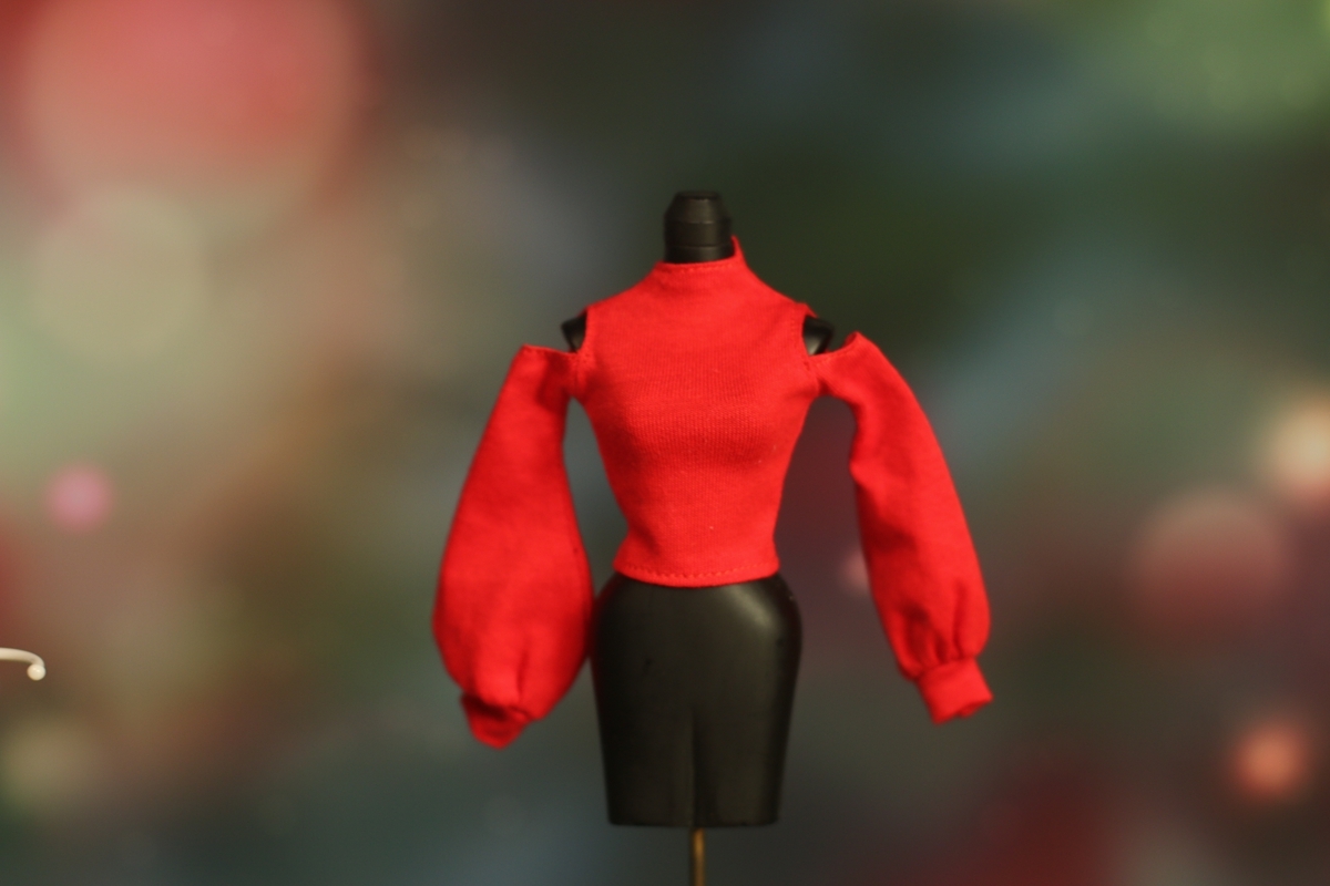 - 人形服d211-05赤い色肩だしバルーンスリーブTシャツ(momokoジェニー)