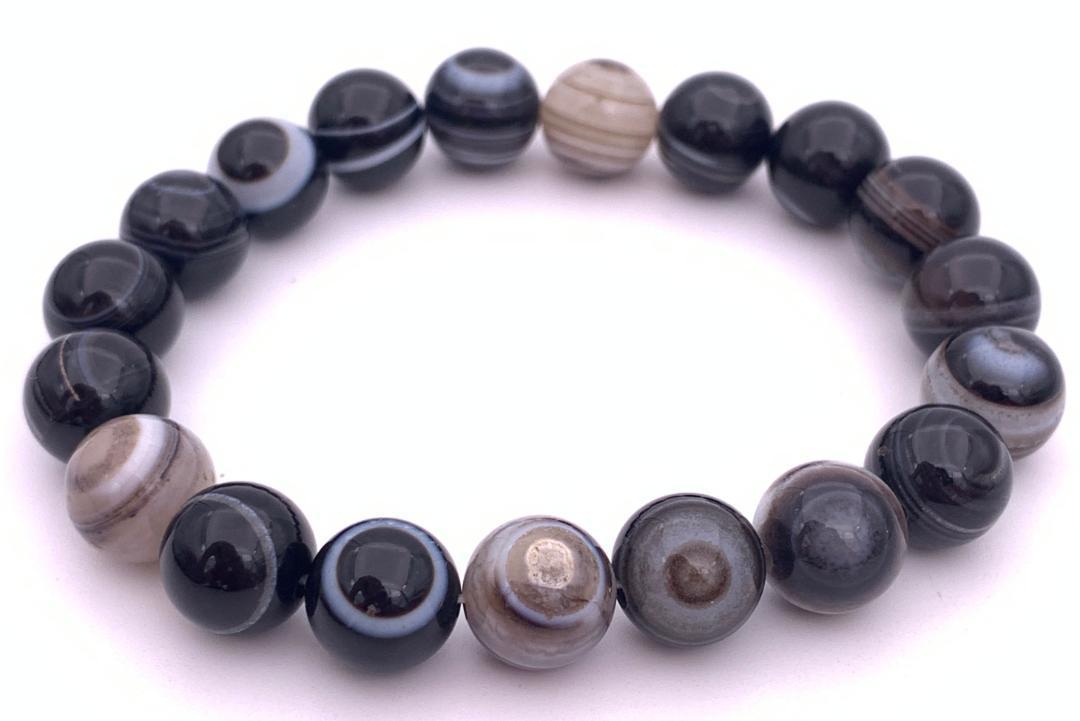 - 天然石チベットメノウ(天眼石)10mm玉AAのブレスレット-T4