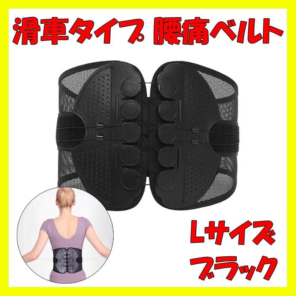 - 腰痛ベルト コルセット ダイエット 滑車タイプ 猫背矯正 腰痛 ブラック 黒 Lサイズ
