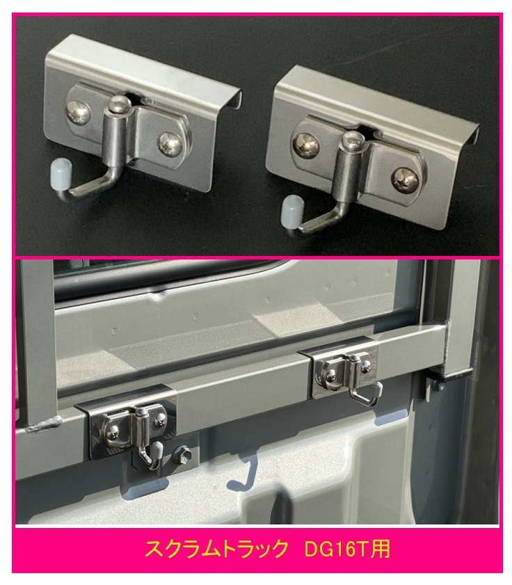 - ◎軽トラ 荷台鳥居(アングルポスト)用 便利アイテム 多目的ステンレスフック 2個SET スクラムトラック DG16T
