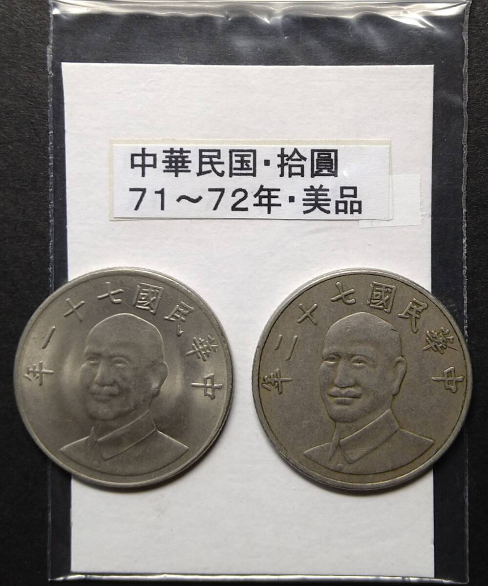 - 中華民国・拾円硬貨・71年・72年(2枚)【中古】