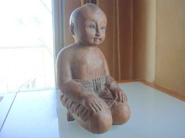 > ◆ 木彫り 時代物 明治~大正期 丁稚奉公 芥子坊主の男の子 高さ22cm オブジェ お店のインテリア 招き猫代わりに 世田谷発送 引取り可