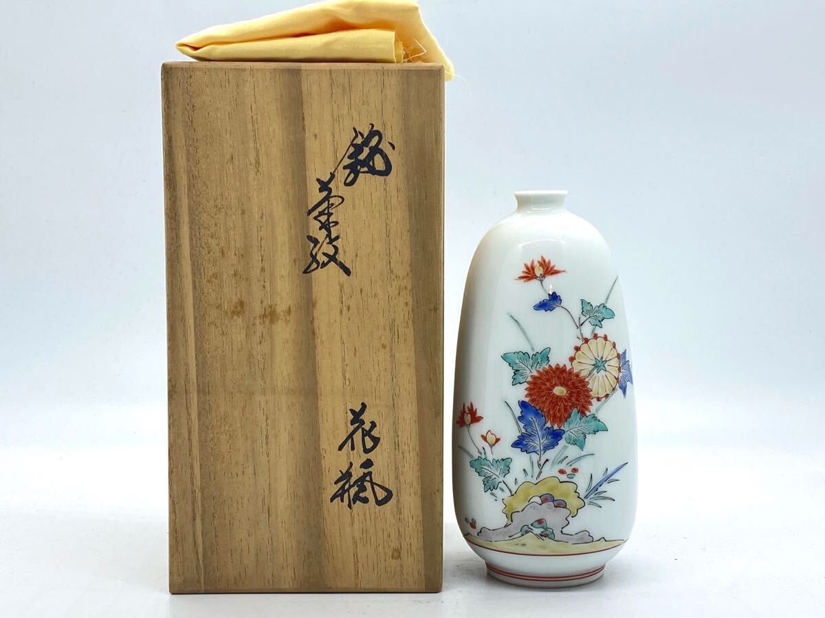 - 十三代目 酒井田柿右衛門 錦 岩菊紋 花瓶 花入 共箱