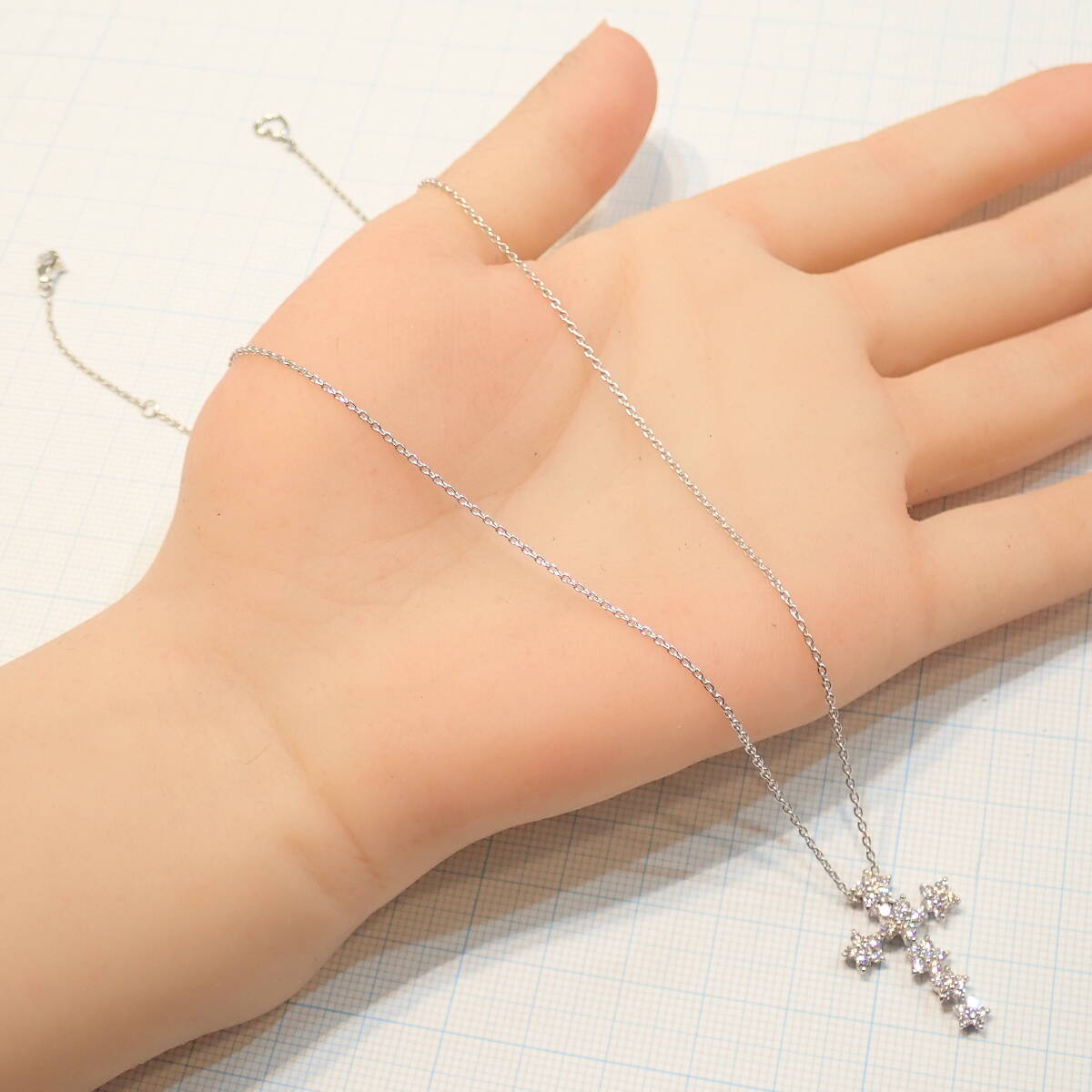 - ■K18WGダイヤモンドクロスペンダントネックレス 0.71ct 40cm 5.6g■十字架■丸アズキ小豆■中古磨き仕上げ■