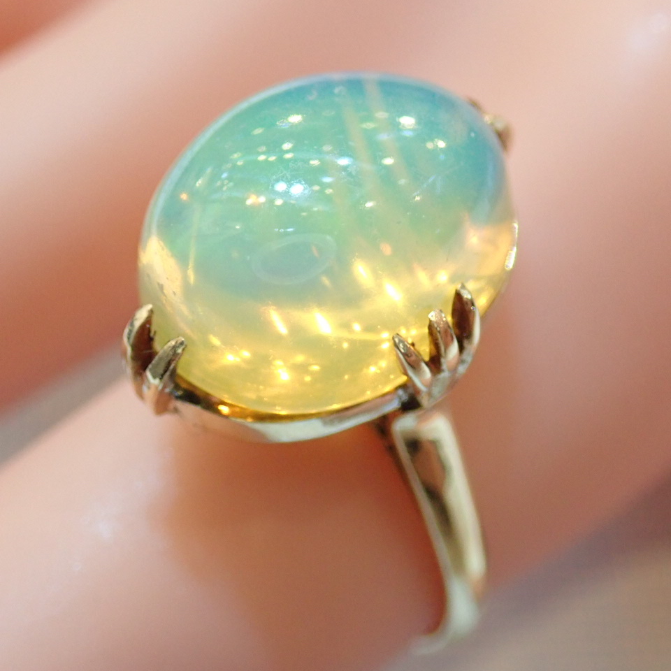 - ■K18 合成?オパールリング■千本透かし(穴透かし)■アンティーク 昭和レトロ■指輪■中古磨き仕上げ■