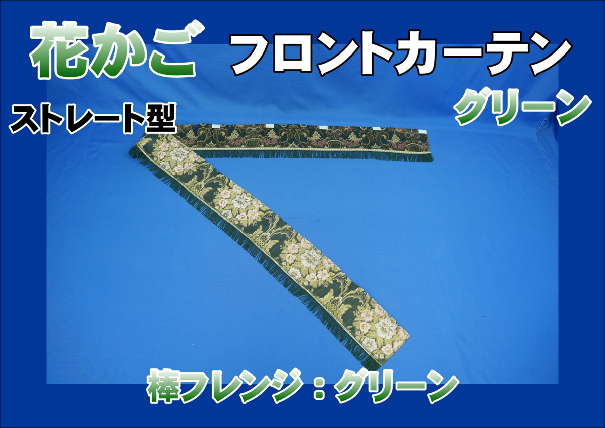 - 花かご フロントカーテン ストレート型 両面仕様 縦柄 グリーン/棒フレンジグリーン