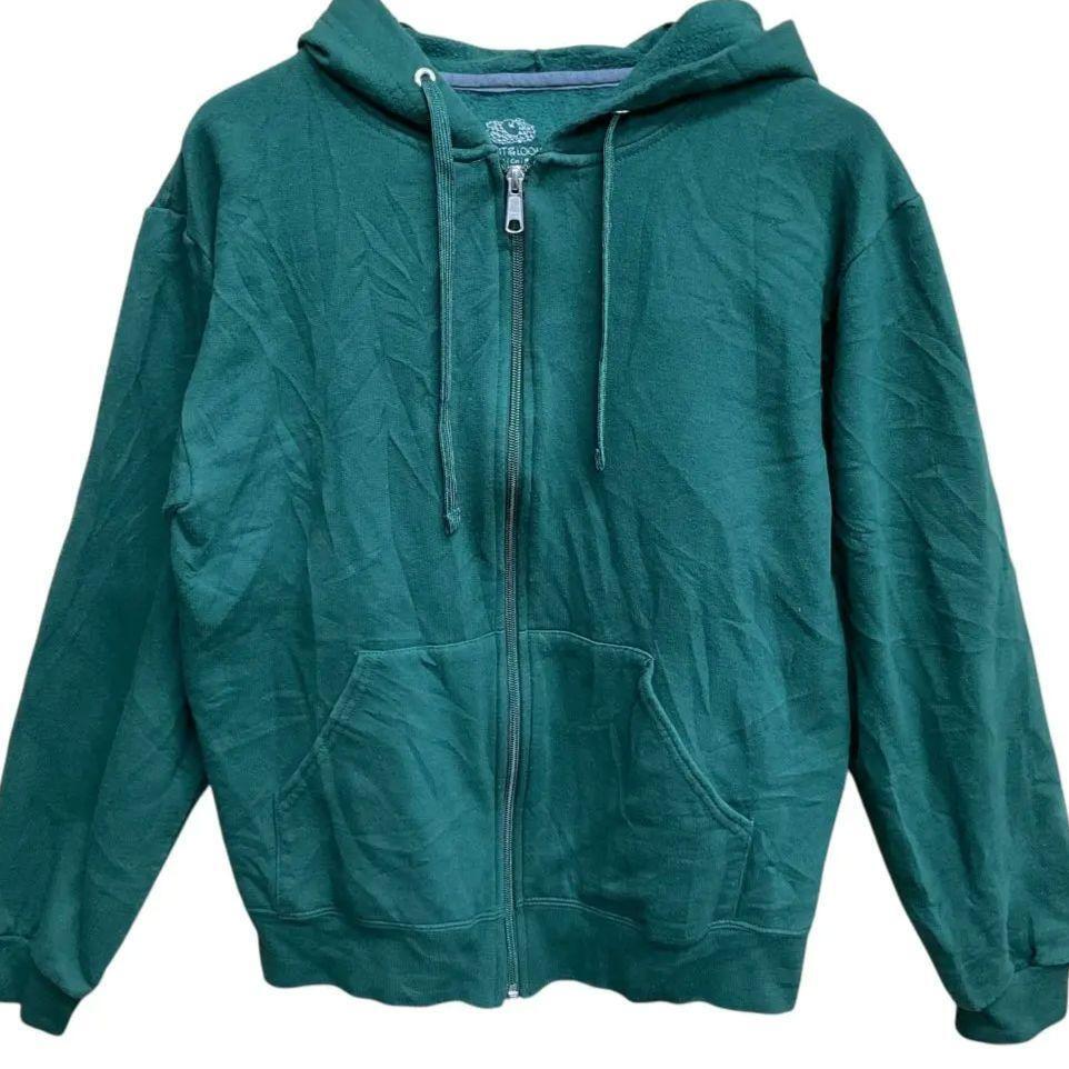 - メンズパーカー 緑 S フルジップ コットン混 秋冬 無地 【1232】