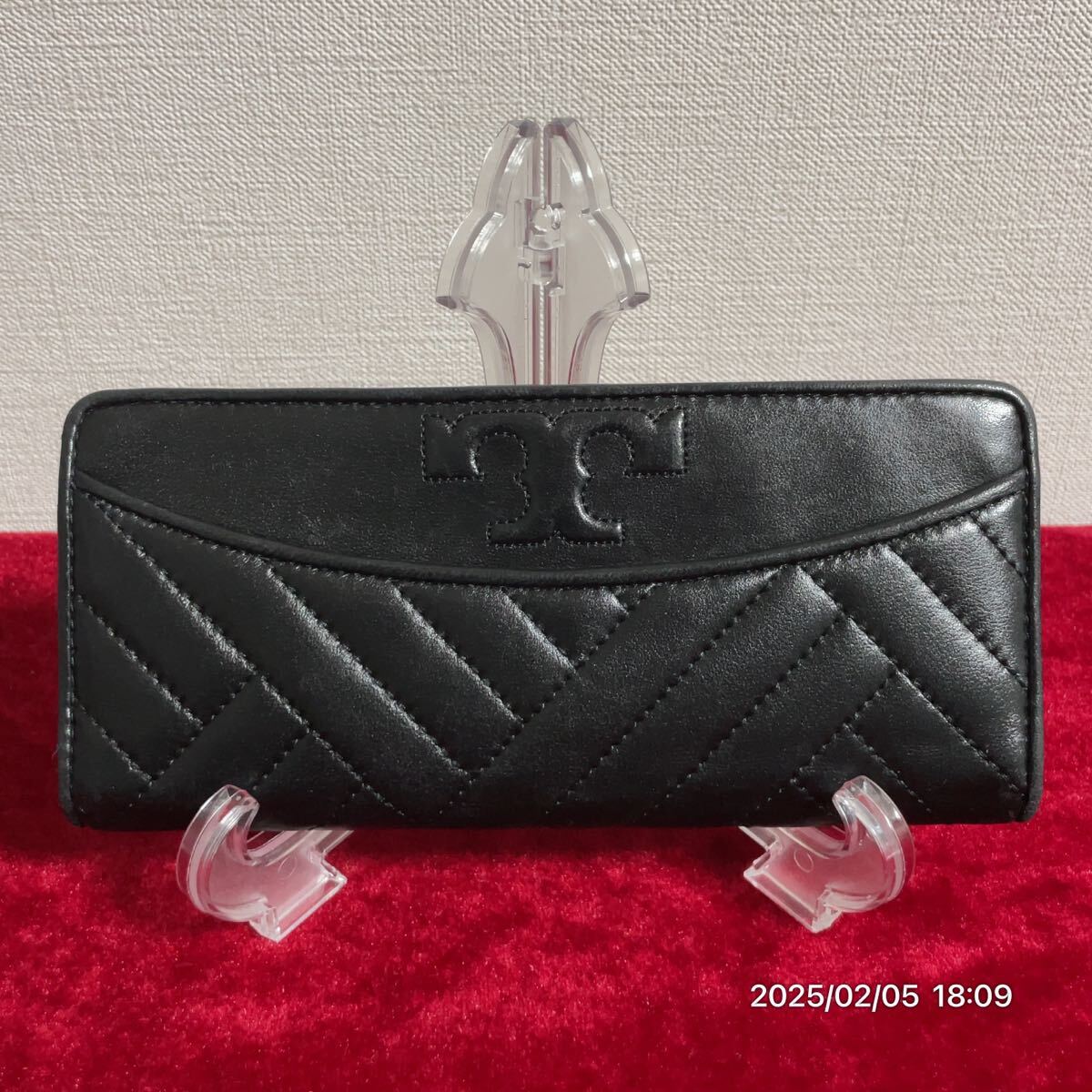 - TORY BURCH トリーバーチ Tロゴ キルティング ブラックカラー レザー 革 二つ折り ウォレット 長財布