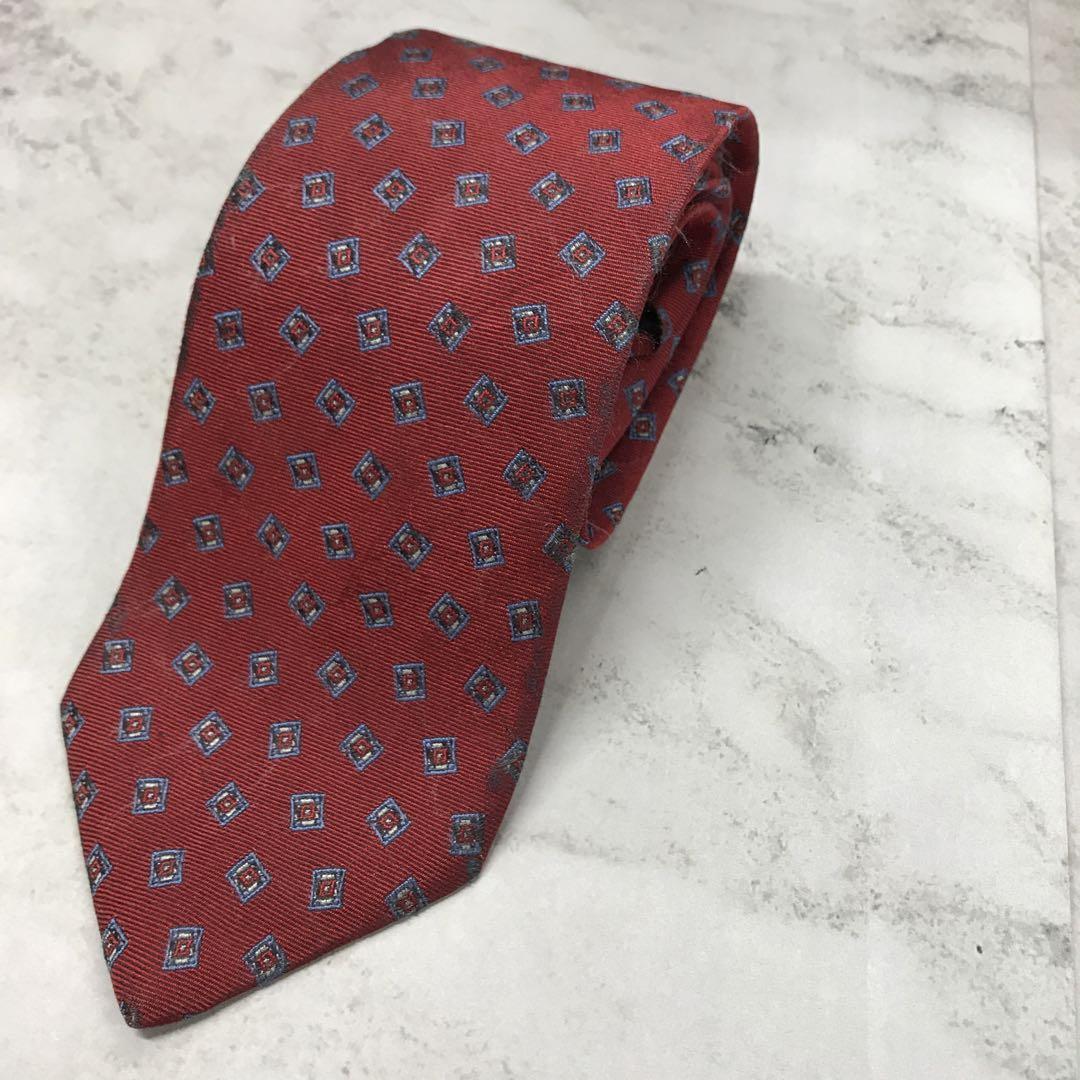 - ブルックスブラザーズ ネクタイ 赤色 ドット柄 シルク 水色×白【n096】