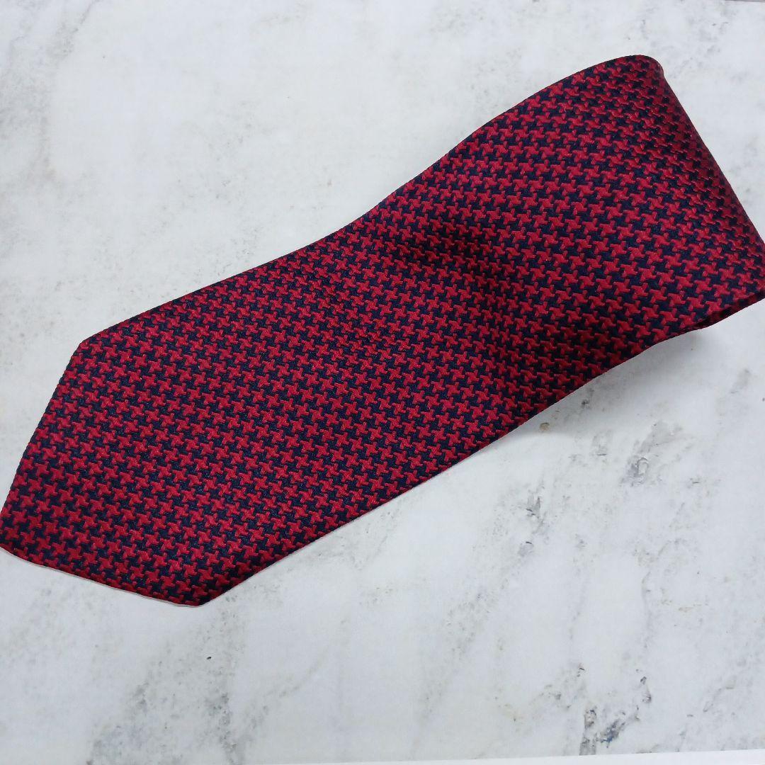 - ブルックスベーシックス ネクタイ 赤+紺 小紋柄 シルク 絹【n078】