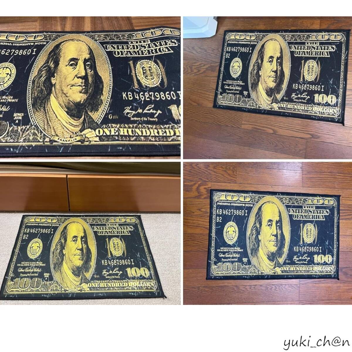 - フロアマット 玄関マット 40㎝×60㎝ ブラック 黒 100ドル紙幣柄 ユニーク ポリエステル製 マイクロ起毛 滑り止め付き