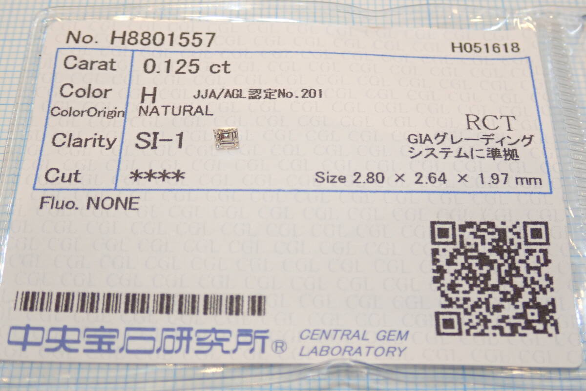 - ■ダイヤモンド 0.125ct H SI-1 中央宝石研究所 ソーティング RCT■Diamond■
