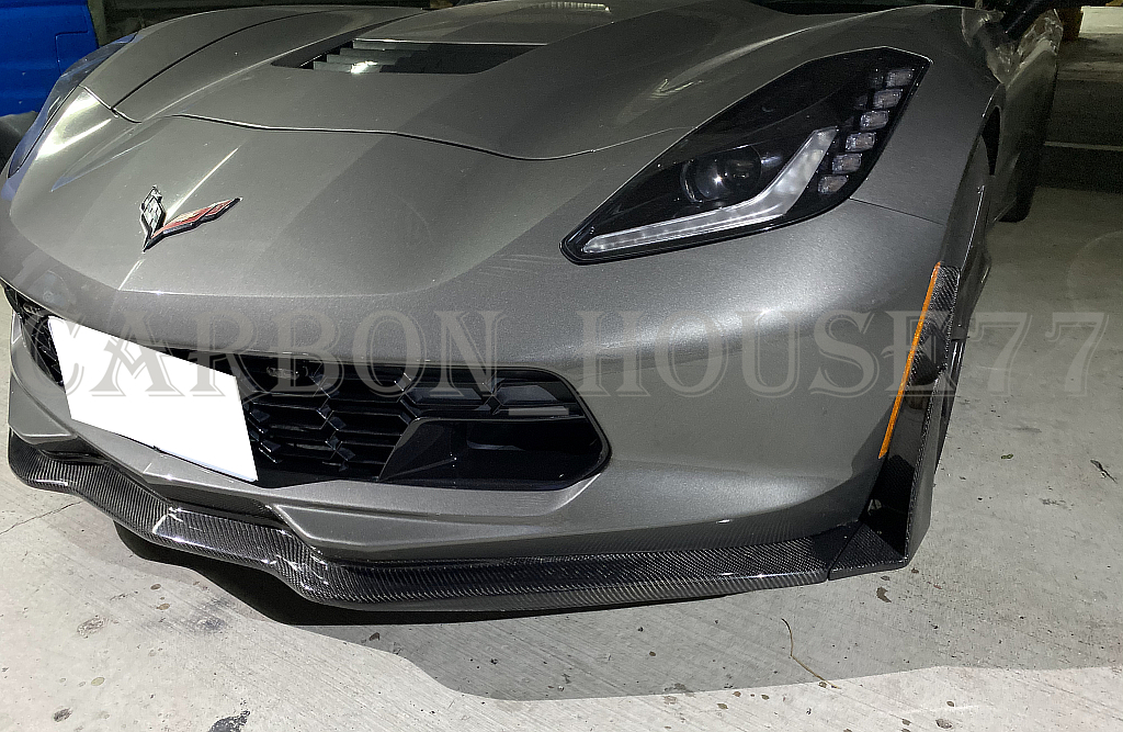 > ★CHEVROLET コルベット C7 スティングレー Z51 Z06 GS カーボン フロント リップスポイラー T1型 2014-現行《3分割タイプ》☆.