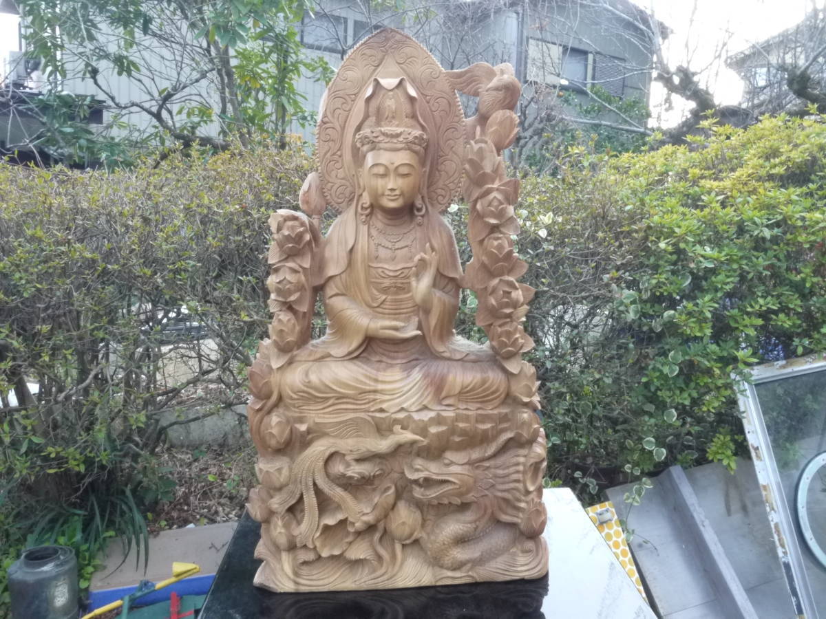 - ★【A30314】仏教美術 観音菩薩像 仏像 蓮上観音菩薩坐像 「説法印が右手のレア品」 高さ53cm 木製 骨董 古美術品