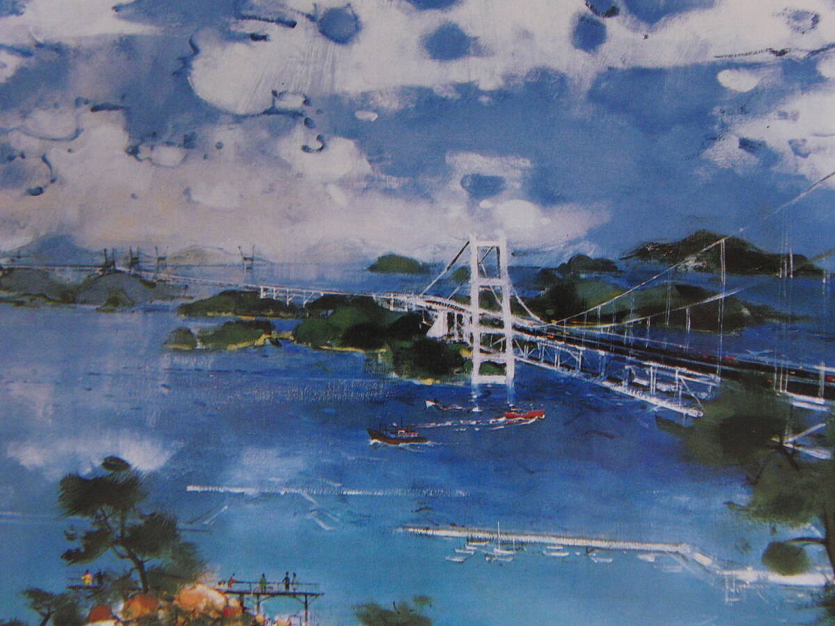 - ミッシェル・ロッド、「瀬戸大橋」、厳選、希少画集・額装画、人気作品、新品高級額 額装付、状態良好、送料無料