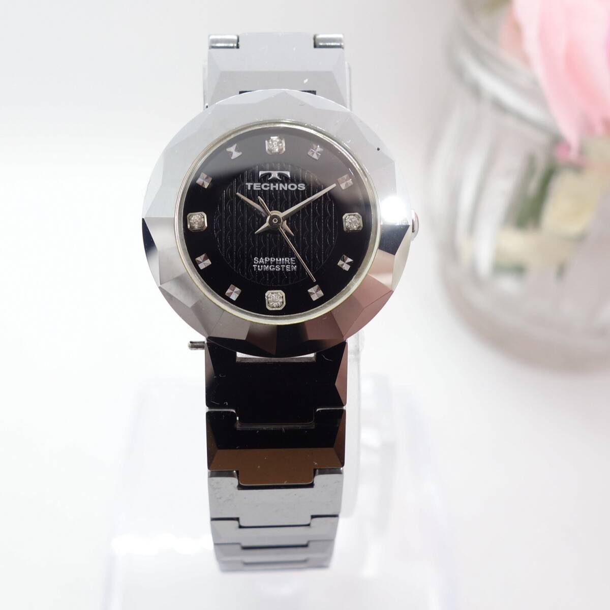 > 《稼働品》TECHNOS★テクノス★SAPPHIRE TUNGSTEN★タングステン★CRYSTAL★クリスタル★クォーツ 腕時計★レディース★シルバー×ブラック