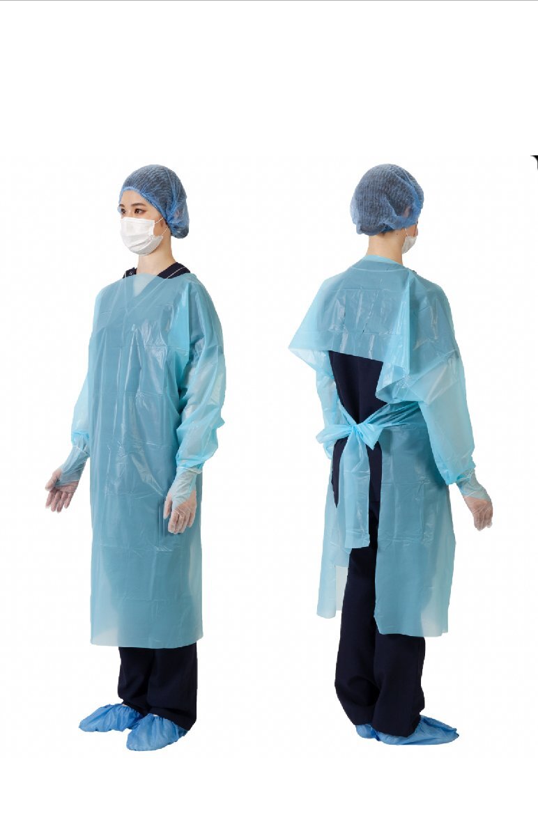 - ④新品/未開封 竹虎 ビニールエプロンE 袖つき ブルー 076340 12箱(1箱 10枚) 120枚 2箱セット 使い捨て ガウン