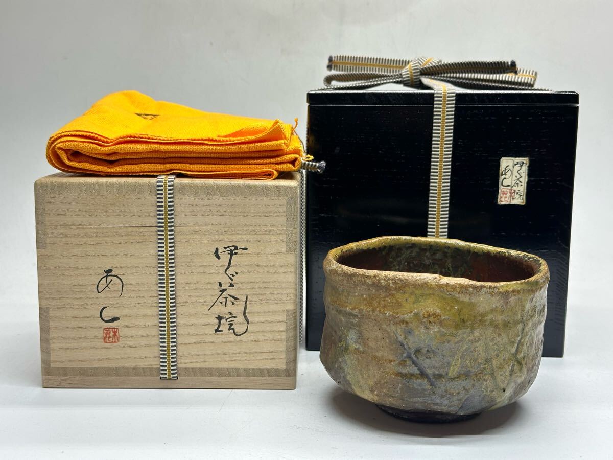 - 最上位作 安倍安人 伊部 檜垣文 茶碗 備前 共箱 共漆二重箱 ①
