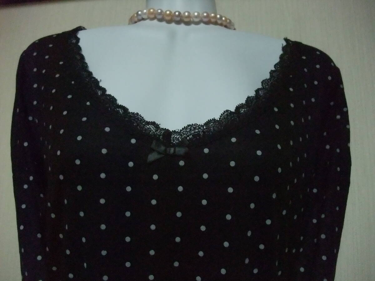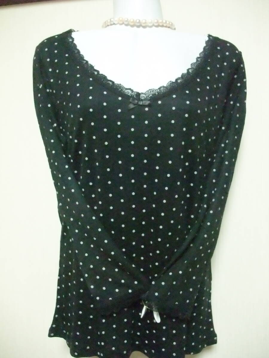 - トップス/インナー/Vネック/ドット柄/黒系/XL