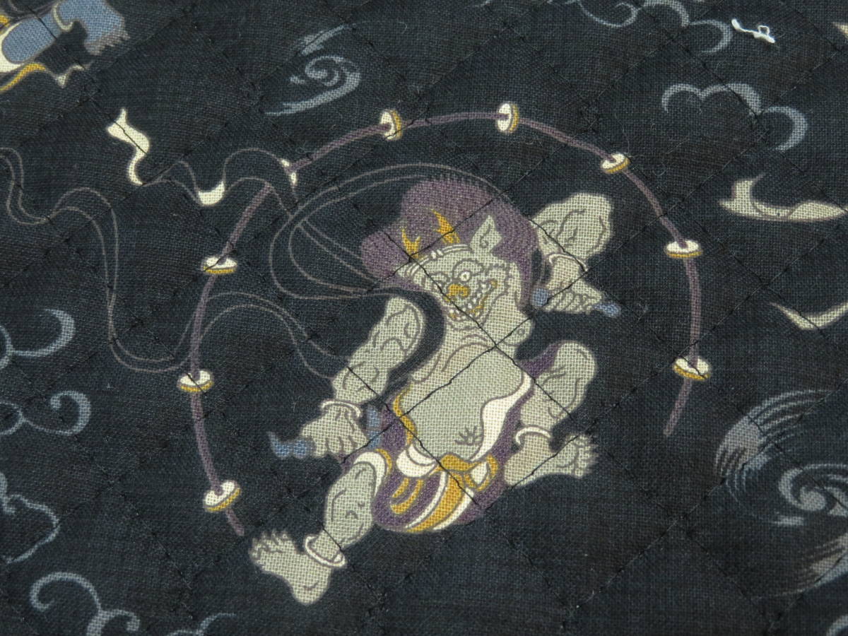 > 1m単位販売 キルティング (Q-94) 風神雷神柄 キルト 黒色 約106㎝幅 風神雷神 黒 和調 和柄 薄手 シーチング 布 生地 教材 日本製 安い
