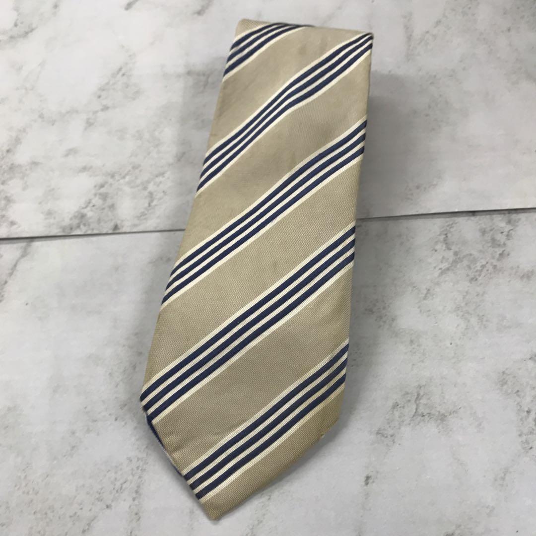 - フランコスパダ ネクタイ ベージュ×紺 ストライプ シルク%【n169】