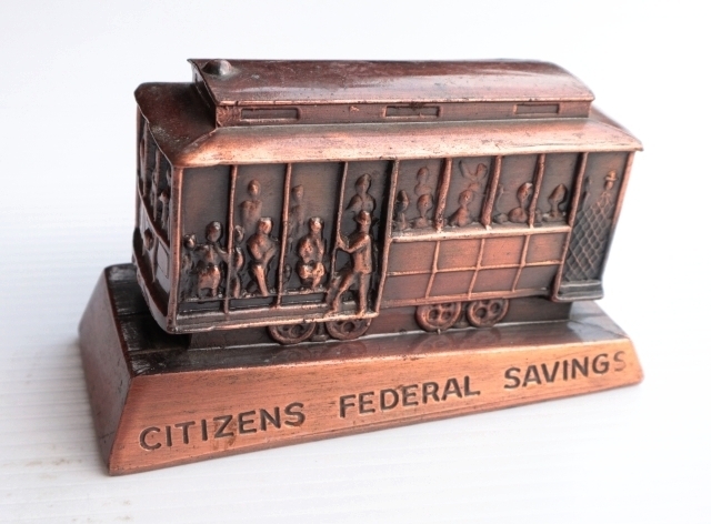 > ◆ アメリカ雑貨 トロリーケーブルカー コインバンク 貯金箱 長さ 13.1㎝ インテリア/ビンテージ アンティーク レトロ オブジェ USA製