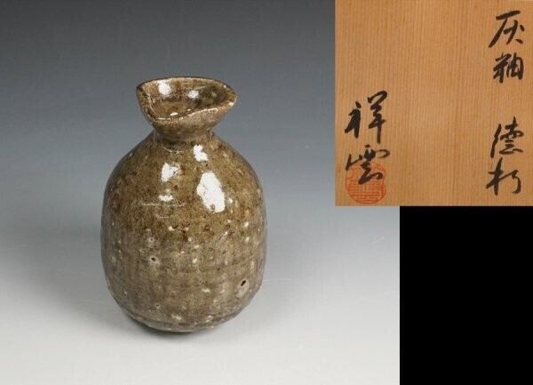 - 祥雲 作 灰釉徳利 共箱 酒器 保証品
