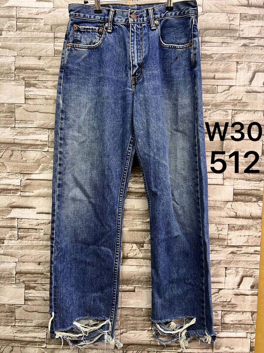- W30 512 Levi's リーバイス ジーンズ デニムパンツ デニム ジーパン ブルー スソ破れ メンズ