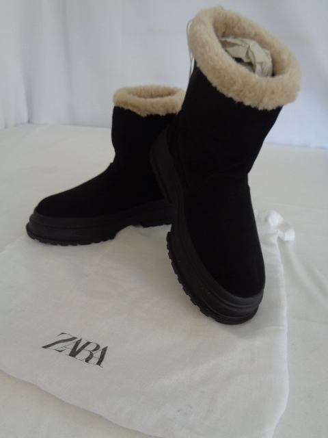 - 2672【本州のみ送料無料】ZARA ザラ レディースブーツ ムートンブーツ ブラック 未使用品