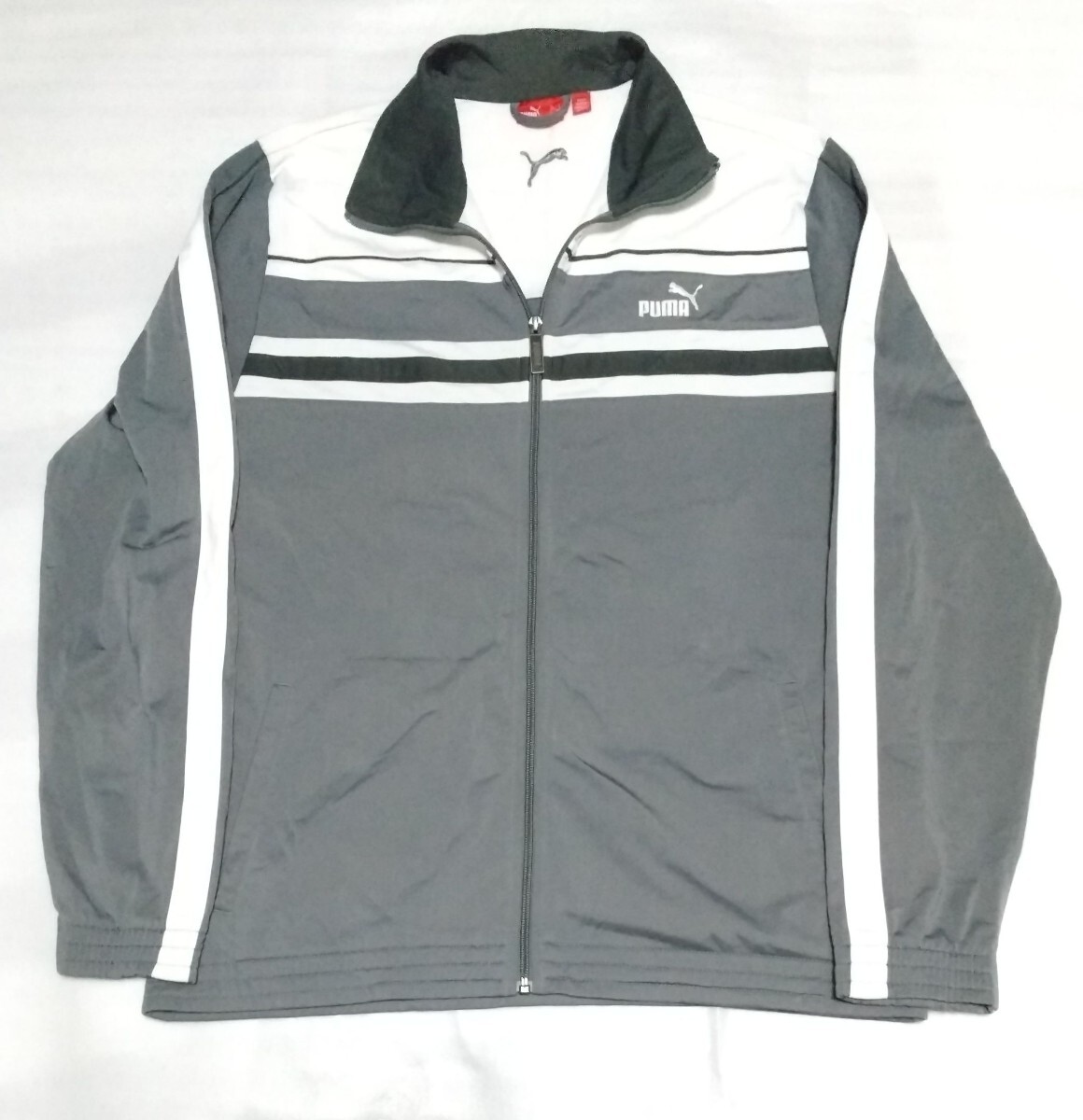 > ☆PUMA.com サイズLフルジップGLAYグレイ白ホワイト上着ジャージ洗濯済ファッション スポーツFOREVER BETTERライフ スタイル ウェア プーマ