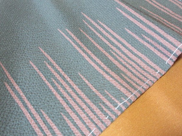 - 28499小紋袷♪未着用!モダン!シャープ!モスグリーン!美品♪