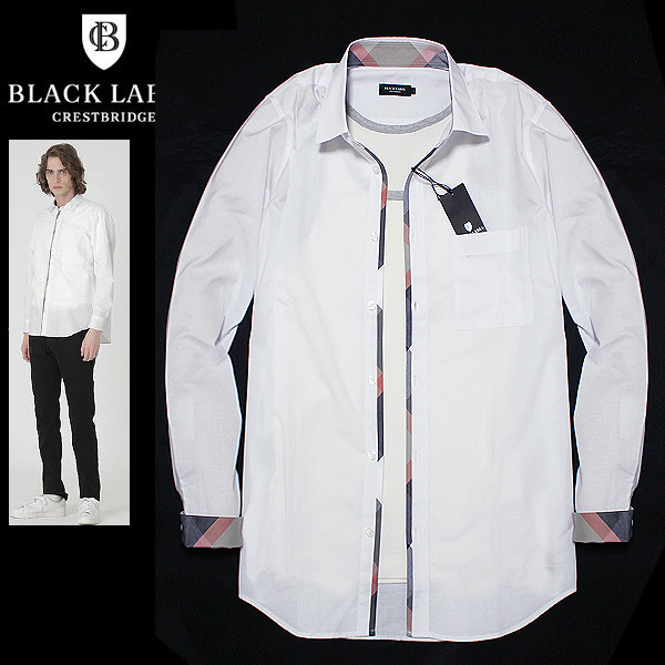- 定価2.4万!新品 LL(4)ブラックレーベル クレストブリッジ 清涼感◎リネン混(麻) 前立てCBチェック 長袖シャツ BLACK LABEL CRESTBRIDGE LL