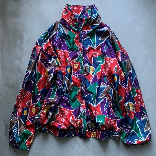 > 【S/M】SALE!! 80s EVR ジップアップ ポリエステルジャケット 総柄■ビンテージ オールド レトロ アメリカ古着 レディース