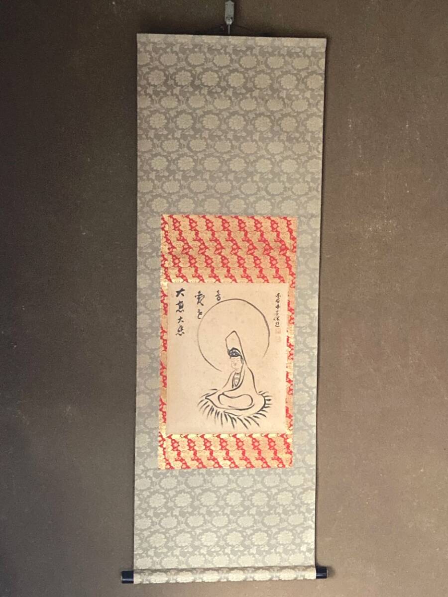 - 岩上観音 大恵大悲 「観音菩薩座像」掛け軸 東福