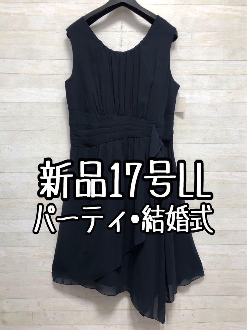 - 新品☆17号LL♪紺系のパーティワンピース♪シフォン素材♪謝恩会二次会〇G334