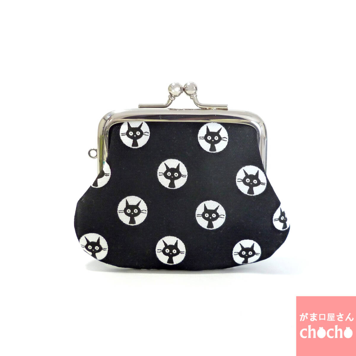 - がま口小銭入れ 黒猫柄 ネコ 財布 コインケース ハンドメイド G398