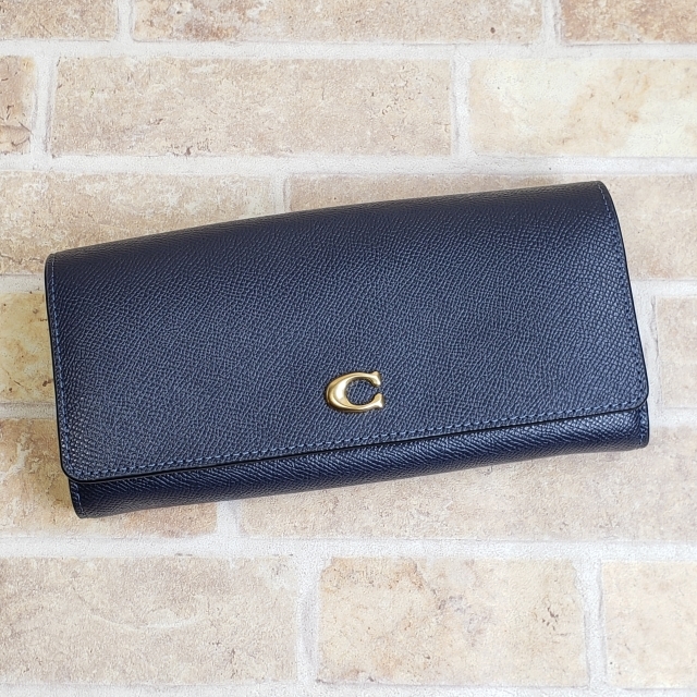 - COACH コーチ レザー フラップ 長財布 小銭室有 収納多 ネイビー ロングウォレット