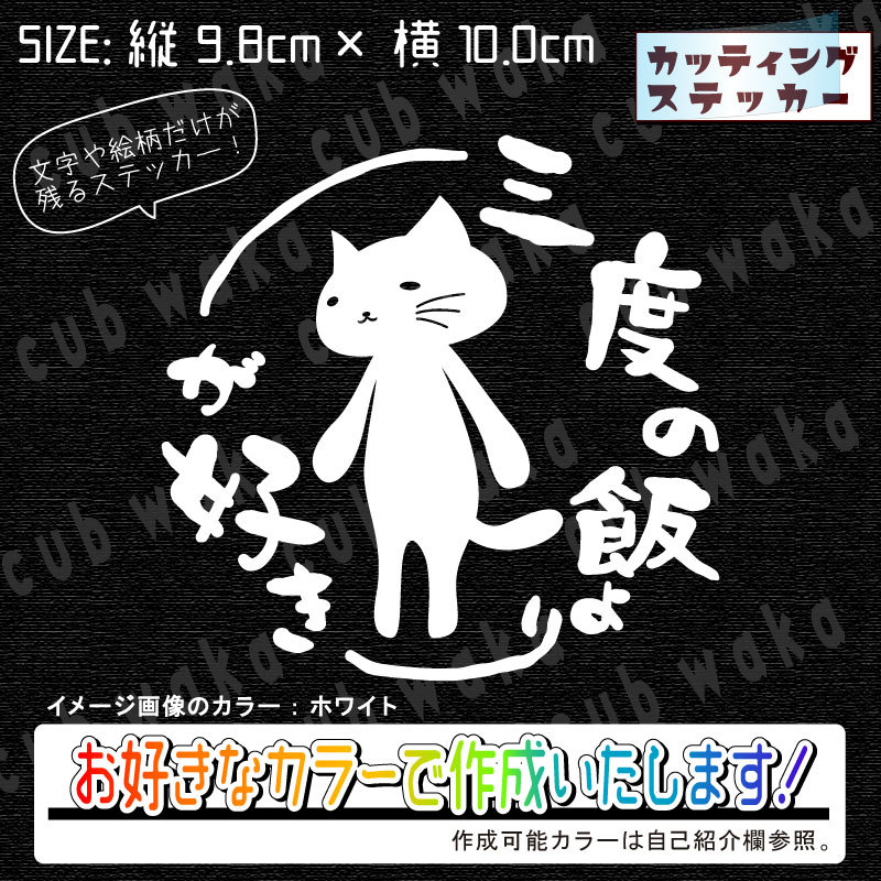 > 三度の飯よりネコが好き②-1ステッカー 文字絵柄だけ残るカッティングステッカー・車・カブ・二輪・猫・リアガラス・郵便受け・猫活