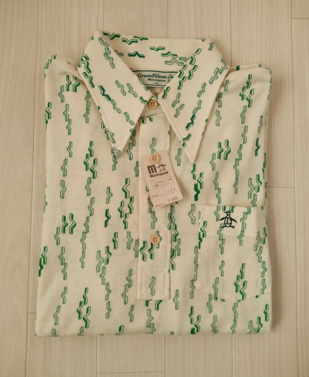 - 【新品タグ付】Munsingwear 総柄 ウールポロシャツ XLサイズ マンシングウエア ゴルフ 昭和レトロ