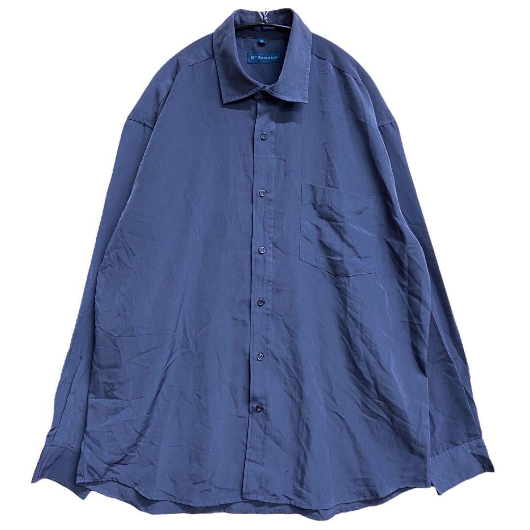 - 8th Avenue メンズシャツ 紺無地 XL(42)光沢 上品【1962】