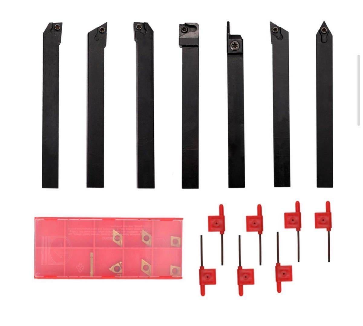 - 国内発送 旋盤 バイト ホルダー 10mm角 7本 チップ付 セット 新品 スローアウェイバイト バイトセット